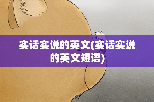 其实实话实说的英文的问题并不复杂,但是又很多的朋友都不太了解实话实说的英文短语,因此呢,今天小编就来为大家分享实话实说的英文的一些知识,希望可以帮助到大家,下面我们一起来看看这个问题的分析吧!
