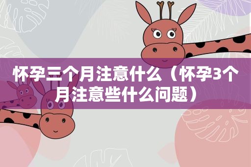 1、怀孕三个月注意事项有哪些1 合理应对晨吐,怀孕前三个月的晨吐是正常现象,过了前三个月症状会明显改善,一般在孕中期就会恢复正常。